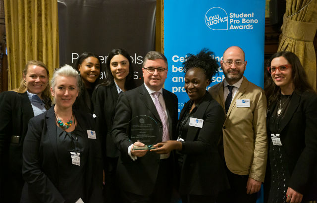 The awards celebrate the best pro bono activities undertaken by law students and law schools across the UK. The award was presented by Solicitor General Robert Buckland QC MP.