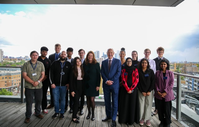 The visit also featured a roundtable discussion involving students from Queen Mary, the LCIoT, as well as employers and staff of the Institute. Conversation covered T-levels, degree apprenticeships and their benefits for students, teaching at the LCIoT, and Queen Mary’s overall educational approach.