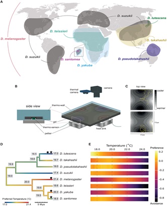 By analysing over 2,400 larval movement trajectories across a custom-built thermal arena, the team discovered that species such as D. lutescens and D. santomea, which inhabit cooler environments, showed a marked preference for lower temperatures compared to their sister species living in warmer habitats. These preferences were confirmed across multiple strains per species, highlighting heritable behavioural adaptations.