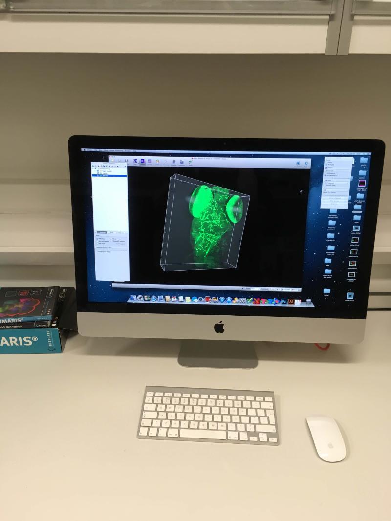 Imaris 7.6.5 software package including ImarisColoc and FilamentTracer installed on 27" iMac computer.