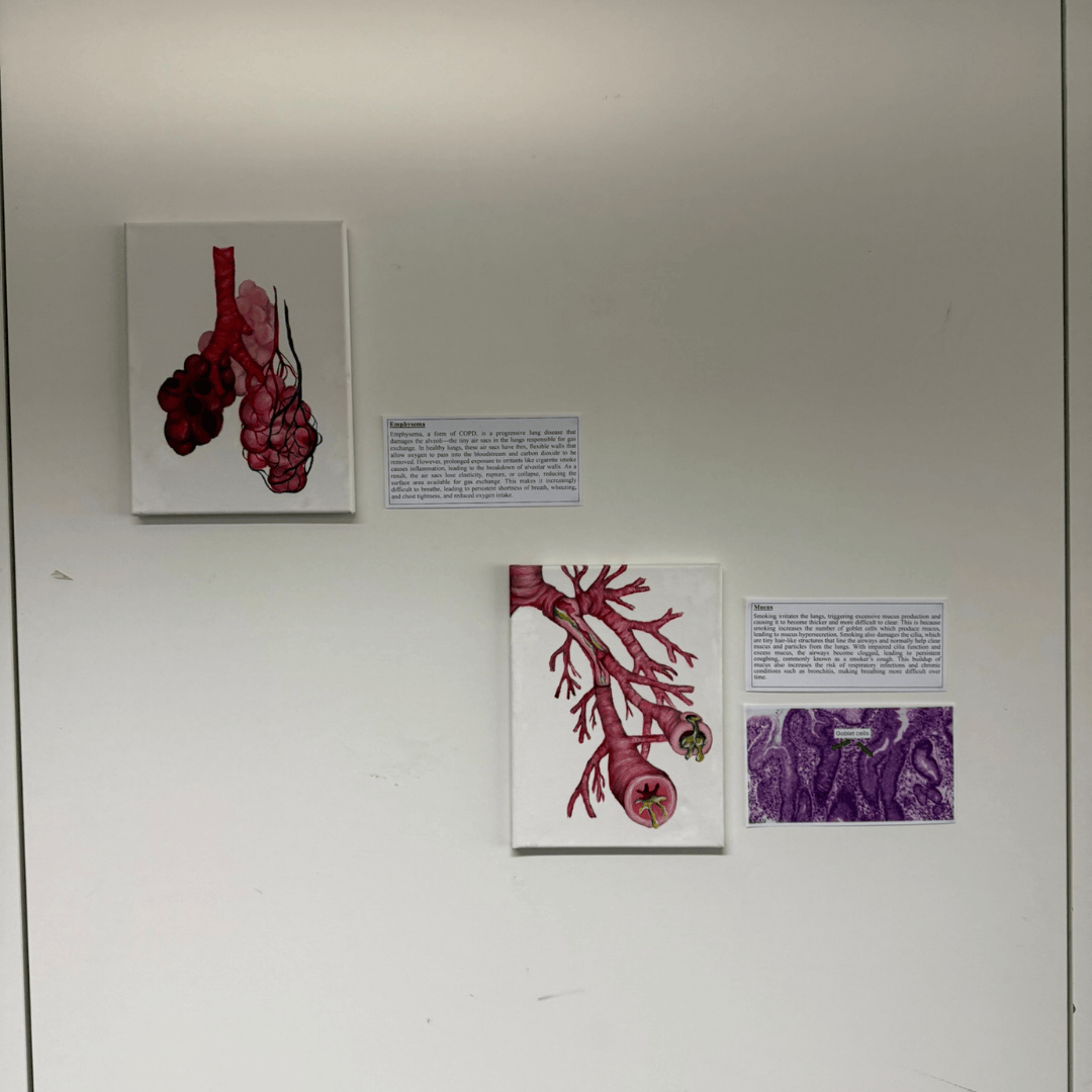 I feel as though art is a universal language that everyone can understand and connect to. Visual media has long been used to tell stories and convey information, yet science often leaves little room for creativity. Bridging these fields together was both exciting and meaningful, as it allowed for a fresh approach to science communication. Using art as an educational tool engages a broader audience, making scientific concepts easier to grasp. Moreover, traditional methods of learning, such as lectures and workshops, can become very monotonous for students and so learning through art can feel more immersive and engaging. Additionally, an exhibition provides a social space where people can come together in a relaxed environment, which encourages reflection and discussion.