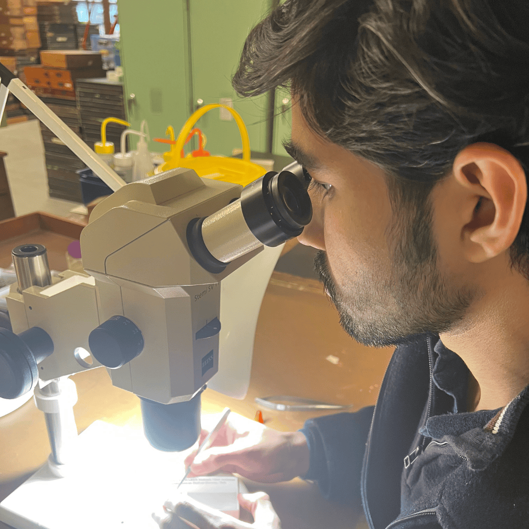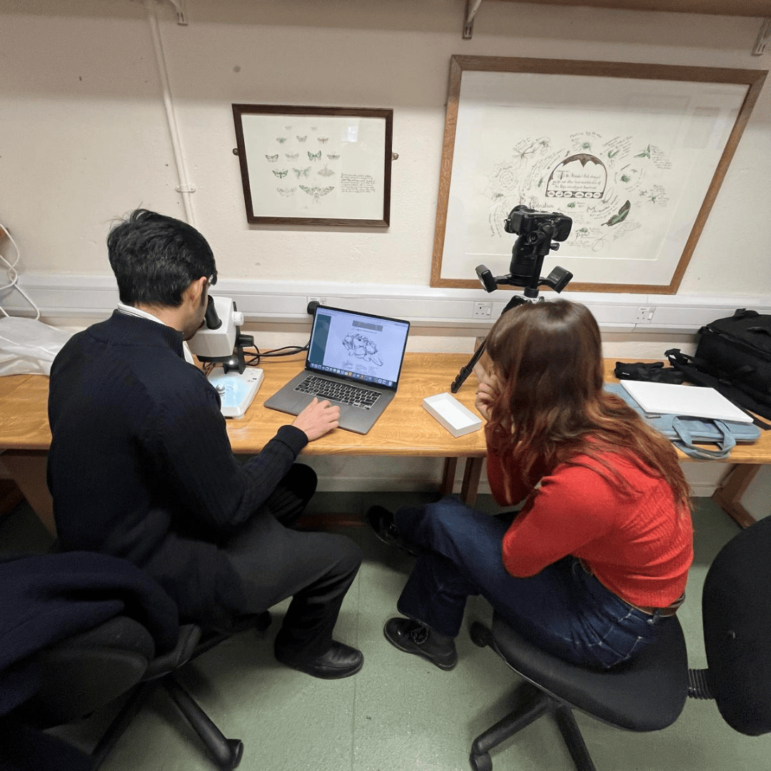 I hatched a plan to bring insect specimens from Punjab to the NHM. My mother, ever supportive, became my eyes and ears back home. “Just save anything dead you find around the house,” I told her. She started collecting bugs trapped in windowsills, storing them in matchboxes like tiny treasures. That winter, I returned to India, sweeping nets through the Shivalik Hills near Chandigarh. I found water beetles, but I also gathered every wasp I spotted to surprise Sophia. I went back to London in early 2024 and marched into the museum with a box full of insects. The beetles were quickly sorted, but the wasps puzzled me, and I didn’t know where to begin.