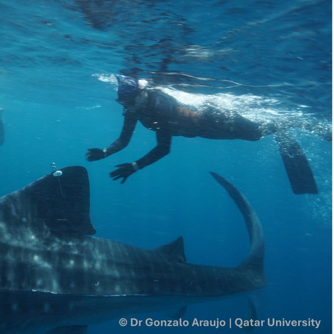 The staff and students showed me there is no single “right way” into a career in science and that with curiosity, persistence, and guidance, anyone can forge their own path. That mindset has enabled me to pursue diverse avenues within conservation, from delivering outreach on UK amphibians to young children, to supporting adults in establishing river conservation groups, and now contributing to marine research initiatives globally. I have been working in Qatar since 2022 on a collaborative Whale Shark Monitoring Program between industry, research, and government, and have recently begun a PhD on whale shark ecology in the Arabian Gulf alongside fellow QMUL alumni. I also work in partnership with the Marine Research and Conservation Foundation in the UK, supporting their shark research initiatives in the UK (blue sharks) and Thailand (whale sharks), whilst encouraging early-career scientist outreach opportunities and supporting shark research in these regions. Without the sustained encouragement, training, and personal support of the staff at QMUL, I would not be where I am today.