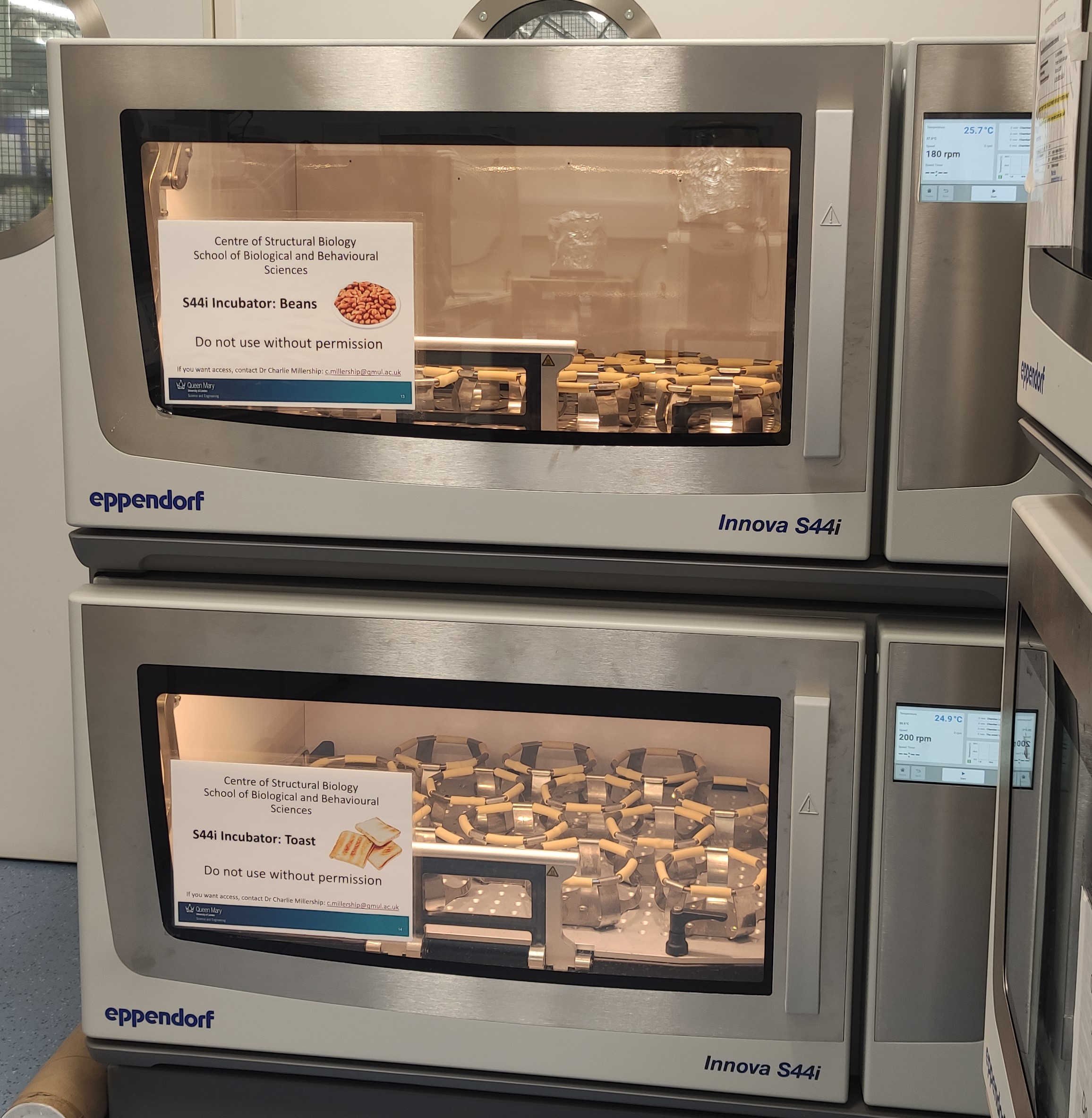 Insect cell expression is performed in a dedicated space in Blizard. We have an MSC, two shaker incubators, automated cell counter, centrifuges and a microscope. Training and consumables will be provided to users.