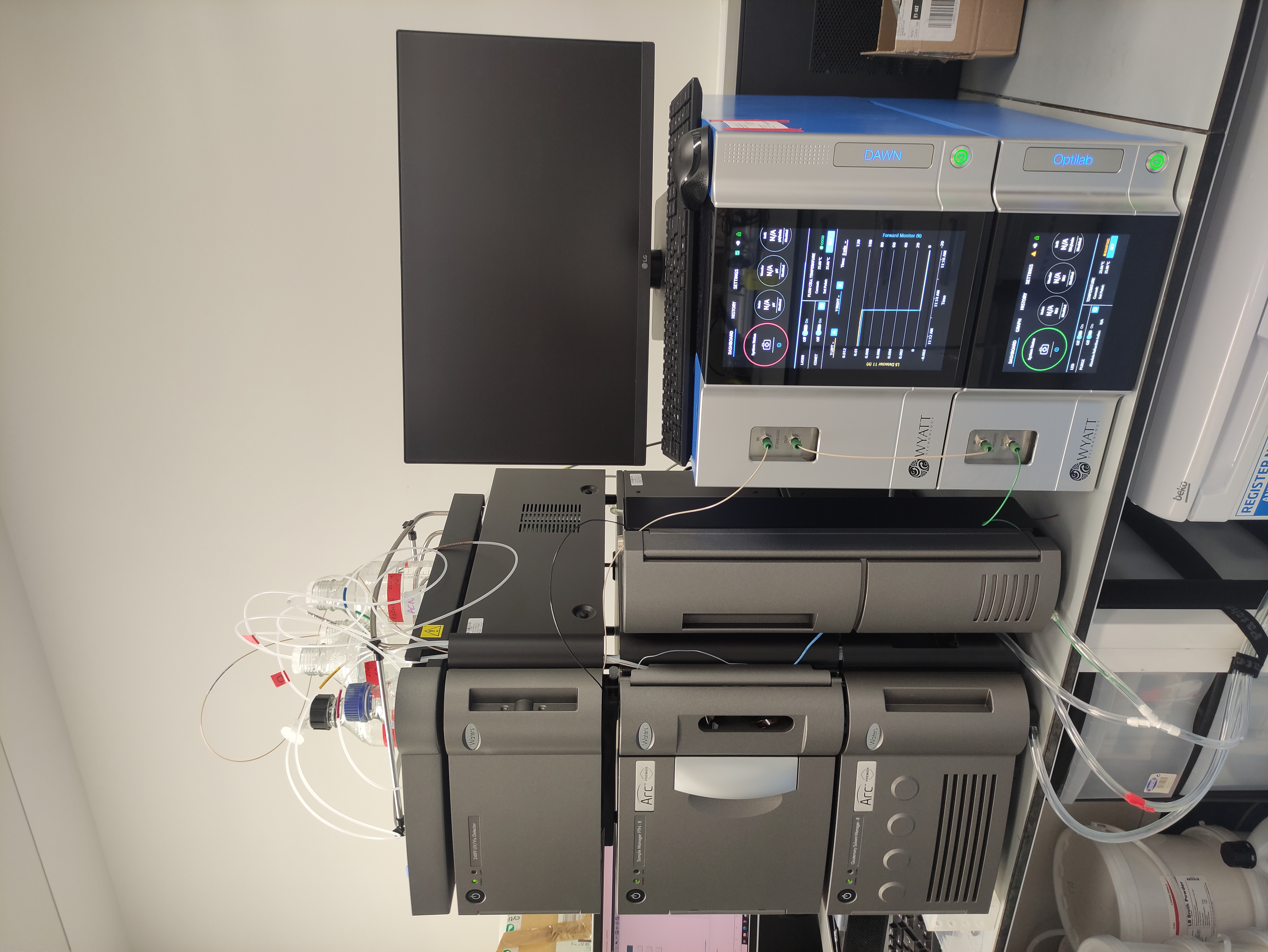 Size Exclusion Chromatography-Multi Angle Light Scattering is an essential tool for determining the characterisation of the molar mass of proteins and other macromolecules in solution.