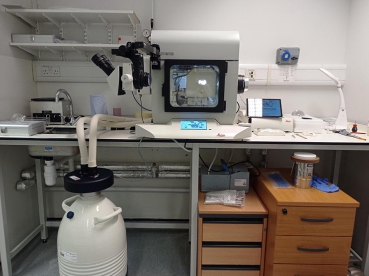Reichert-Jung made a venerable Ultracut E Ultramicrotome, which is ideal for us to obtain Semi and ultra-thin sections, using both diamond and glass knives to thinly slice resin-embedded samples.