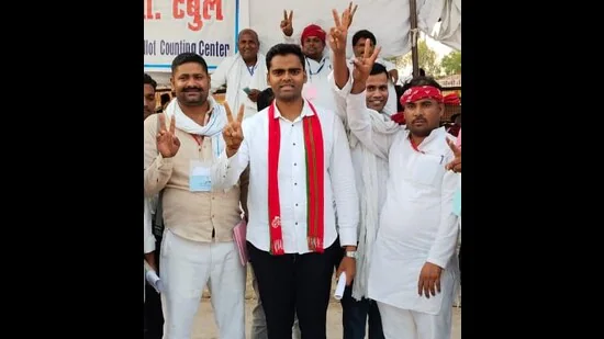 Pushpendra Saroj after his victory in India during the general elections.
