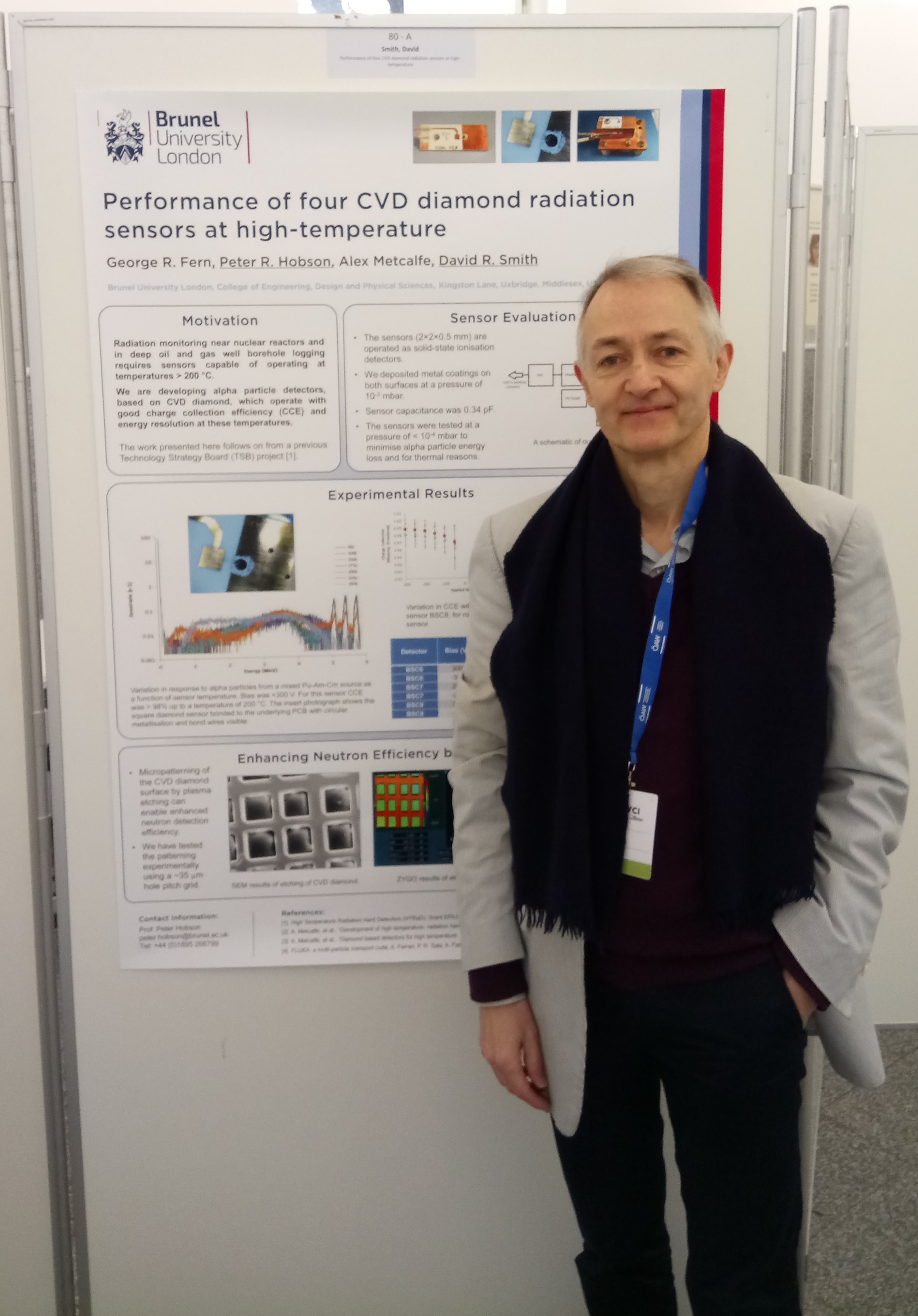 Professor Peter Hobson presented a poster at the Vienna Conference on Instrumentation in February 2019, on work on CVD diamond sensors optimised for high temperature applications.