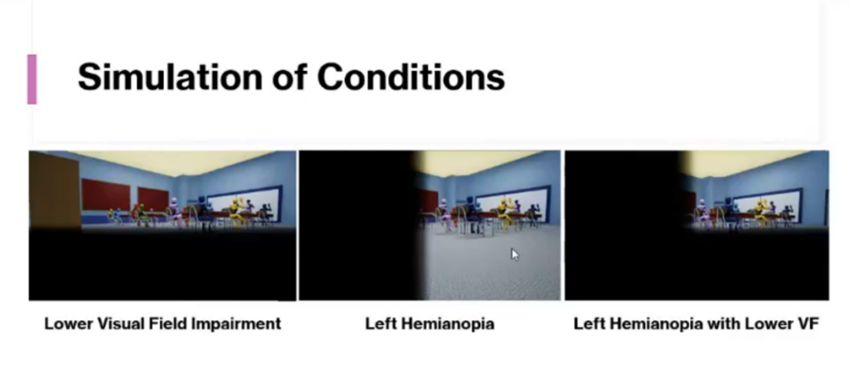 They created virtual simulations of CVI, accessible via a headset, allowing users to experience navigating various environments with this condition. The simulations are intended for parents, teachers, and medical professionals to gain insight into what individuals with CVI endure. Evaluations showed that users experienced increased empathy and understanding, leading to tangible changes such as reducing clutter in classrooms.