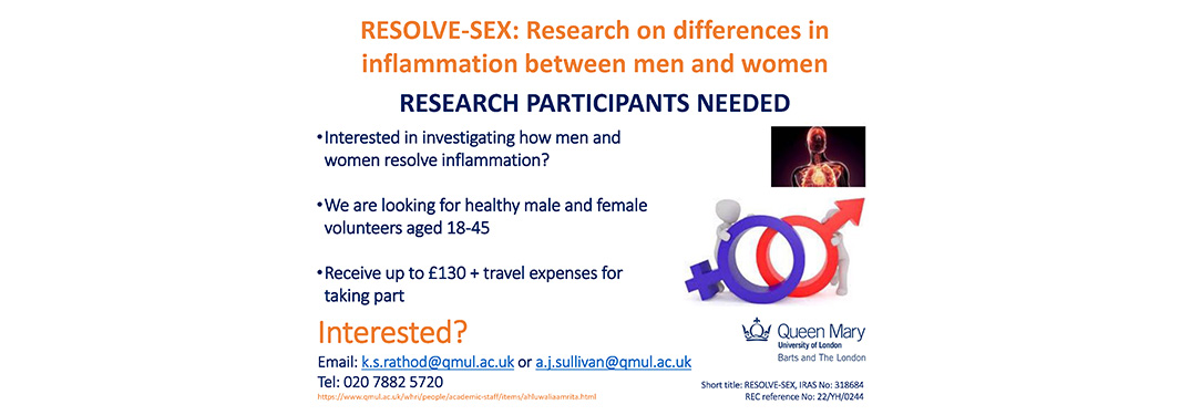 - Interested in investigating how men and women resolve inflammation?