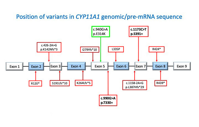 - Maharaj et al. Predicted Benign and Synonymous Variants in CYP11A1 Cause Primary Adrenal Insufficiency Through Missplicing, Journal of the Endocrine Society, Volume 3, Issue 1, January 2019, Pages 201–221, https://doi.org/10.1210/js.2018-00130